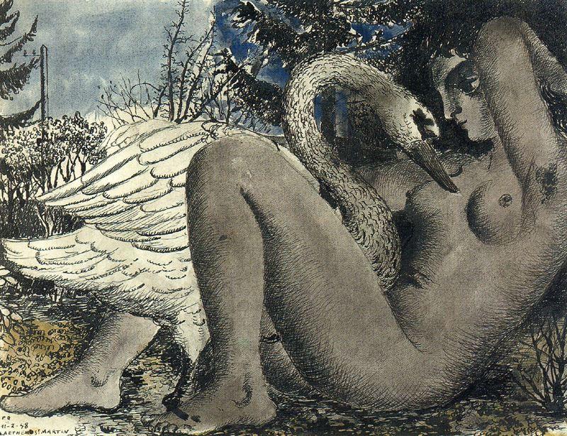 Three versions of Leda, a homage to early Renaissance and a moonlit departure