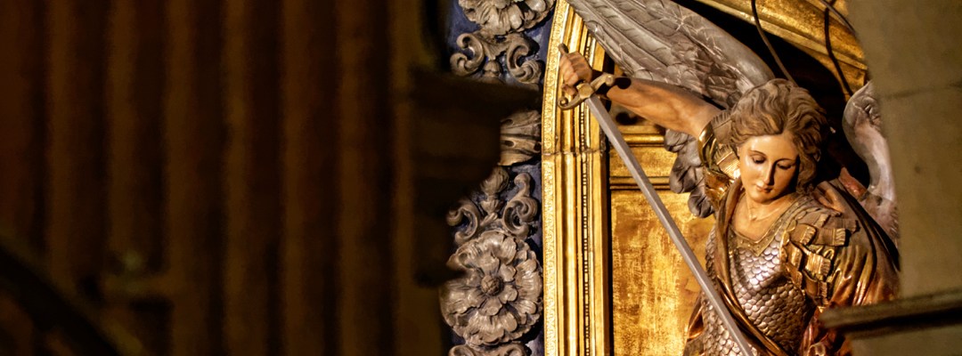 As for my reference to Michael Archangel on the heading, I will not make any particular prayer to him explicit here. Just explain I’m praying. Also, some representations of him have been in my mind all the time while I doubted about how to illustrate this post… In particular, there is a powerful Baroque statue of St Michael Archangel defeating Satan in a chapel at the Basílica de Santa Maria de la Mercè, in Barcelona: