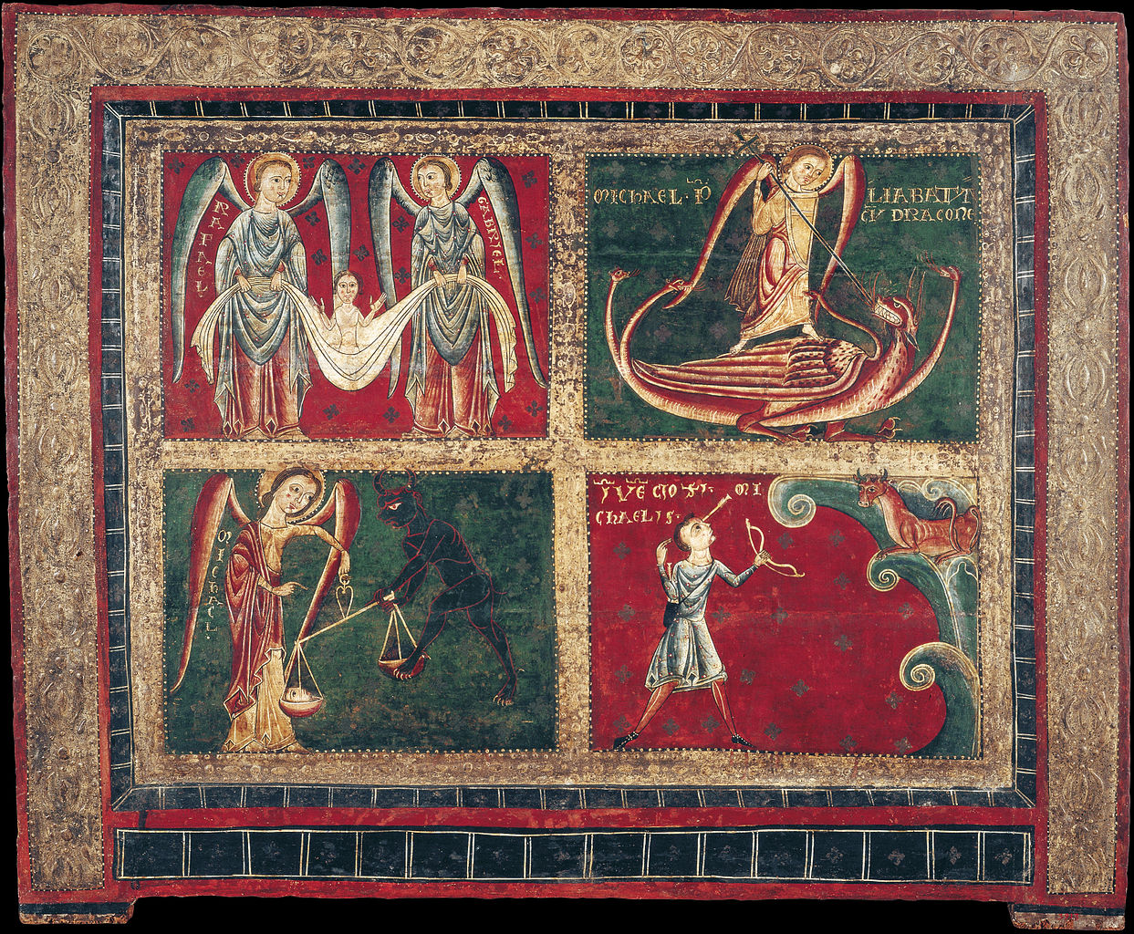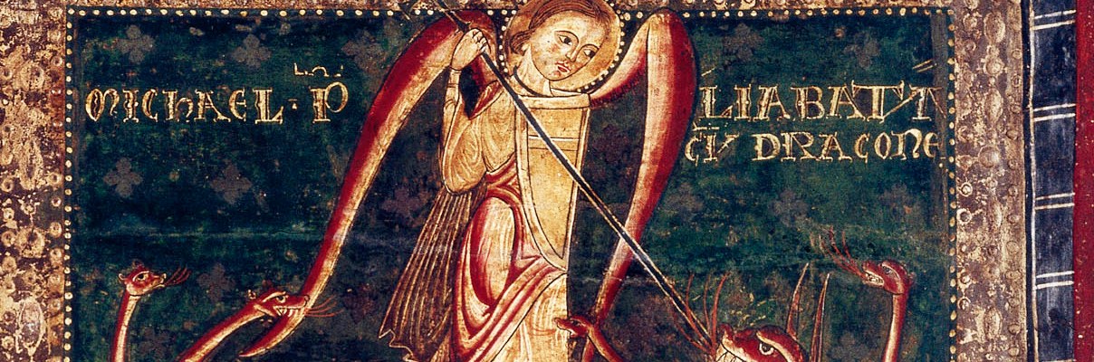 –The heading illustration shows a detail from the famous Altar frontal of the Archangels (second quarter of the 13th century) by the Mestre de Sant Pau de Casserres – one of the many treasures from Catalan Romanesque art. The piece is exhibited at the Museu Nacional d’Art de Catalunya, in Barcelona (MNAC).