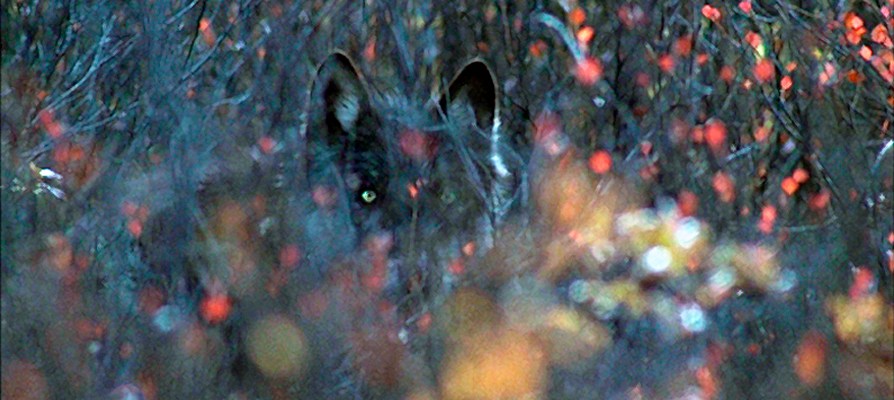 I found the image by pure chance on the Web, long ago, and even if it was a low resolution and rather darkish image (look at it at the end), I liked it at once. I also noticed its possibilities to become very appealing and so I edited it in different ways and used the one I preferred as a wallpaper for my computer –as a featured image in some of my personal pages online too. My younger sister fell in love with that “ruv” or “ruvni” as soon as she saw it and also used the picture several times (she even got it printed), and that’s the main reason why I bring it here to my blog; her favourite photos, videos, paintings, books and anything, are important to me since they make me feel her closer and, sometimes, help me to understand traits of her which I did not perceive well enough while she was here (as much as I thought I knew her thoroughly…) I mean in this case that I have just discovered that Ari –aside of liking wolves– felt identified with the look of this very one: the right eye shinier and much more piercing than the left (she had very poor vision in one eye after an accident she had long ago). She could have thought too that this wolf and all bushes around had the right colour; the one she always said that dyed her dreams.