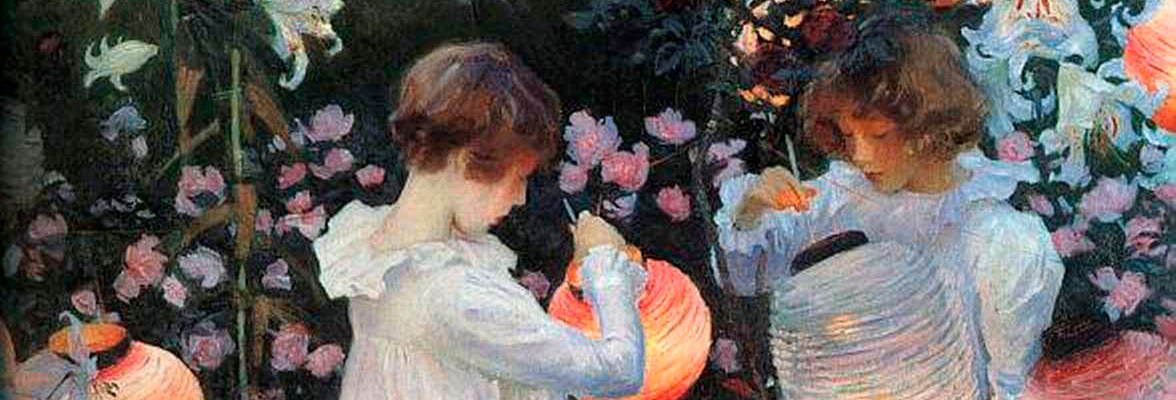 Representing fugitive evening light, the artificial glow of the lanterns and its reflection on the children’s faces, the whites of their dresses and the flowers, was a very difficult task, and it became the main obsession for Sargent during those periods of his life. Finally he depicted very well indeed all the subtle effects of light and colours. No wonder that he considered this oil as his best work; and for many viewers –I for one– it is indeed: