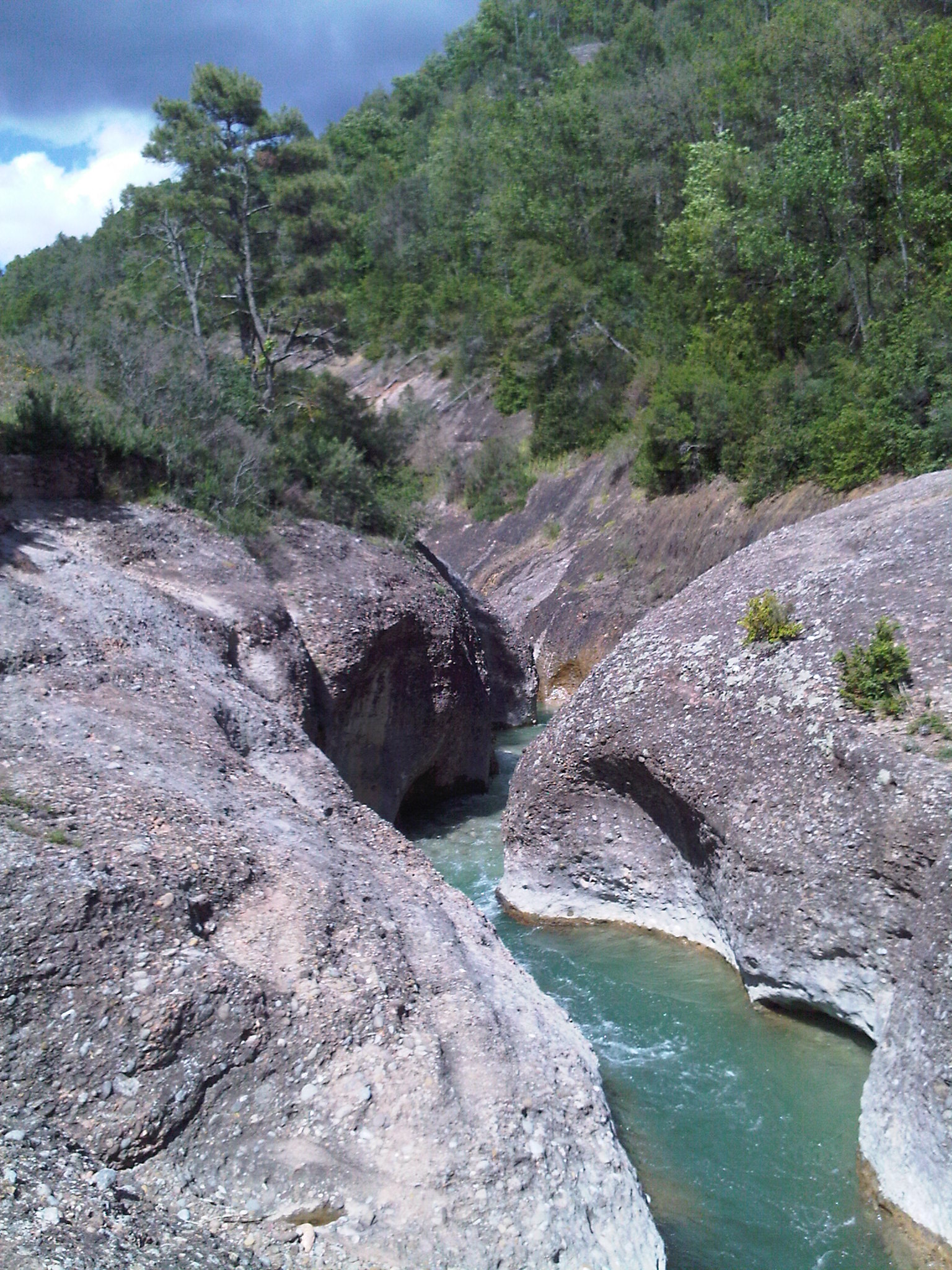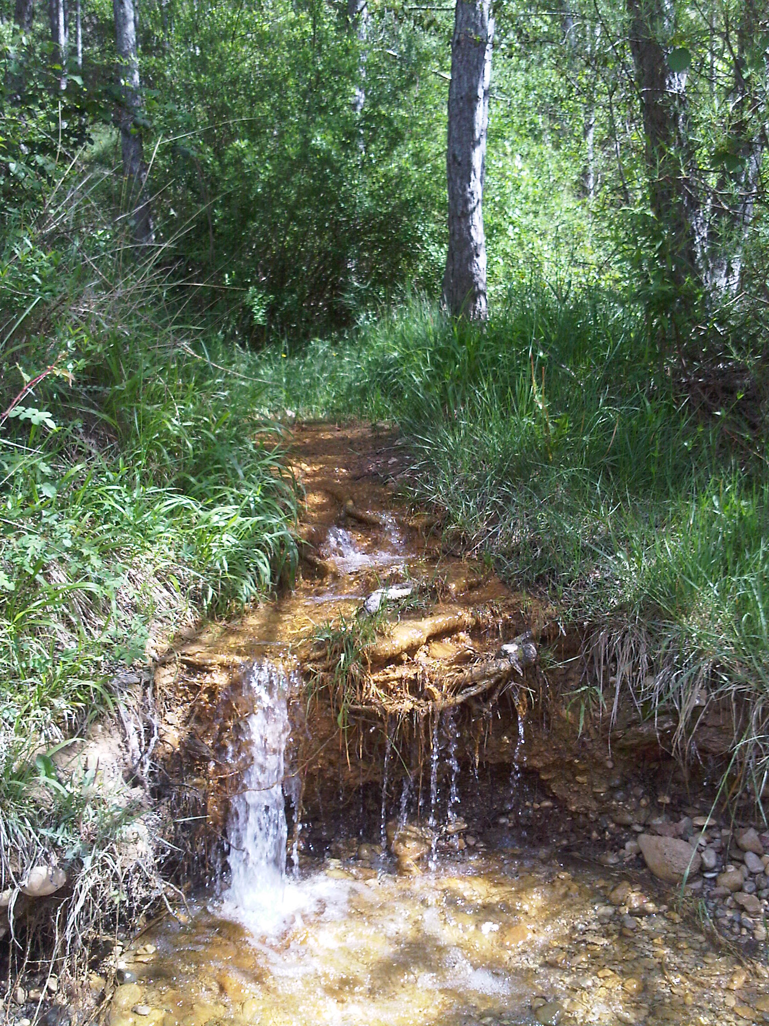 Two more photos of the place: the gorge some fifteen metres upstream, and a pristine fountain that pours its water into the main stream: